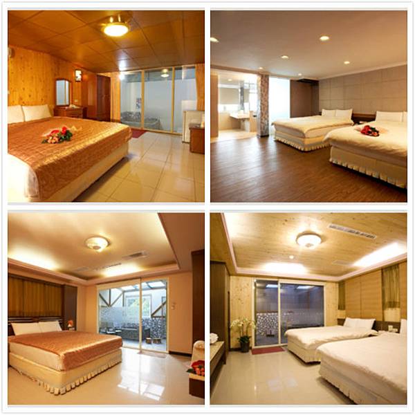 四種房型分別為,溫泉旅館,麗致雙人房,和風家庭房,雅致3+1房。